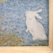 胡粉と水干絵具で描いた、満月を見上げている白兎と夜風に揺れるススキを描いた