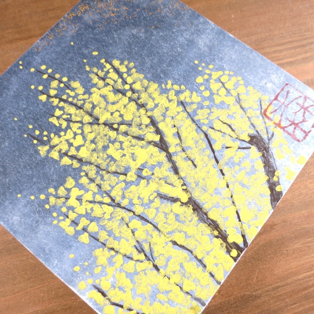 #日本画 #日本画原画 #イチョウ #銀杏 #秋の絵 #原画一点もの #手描きアート