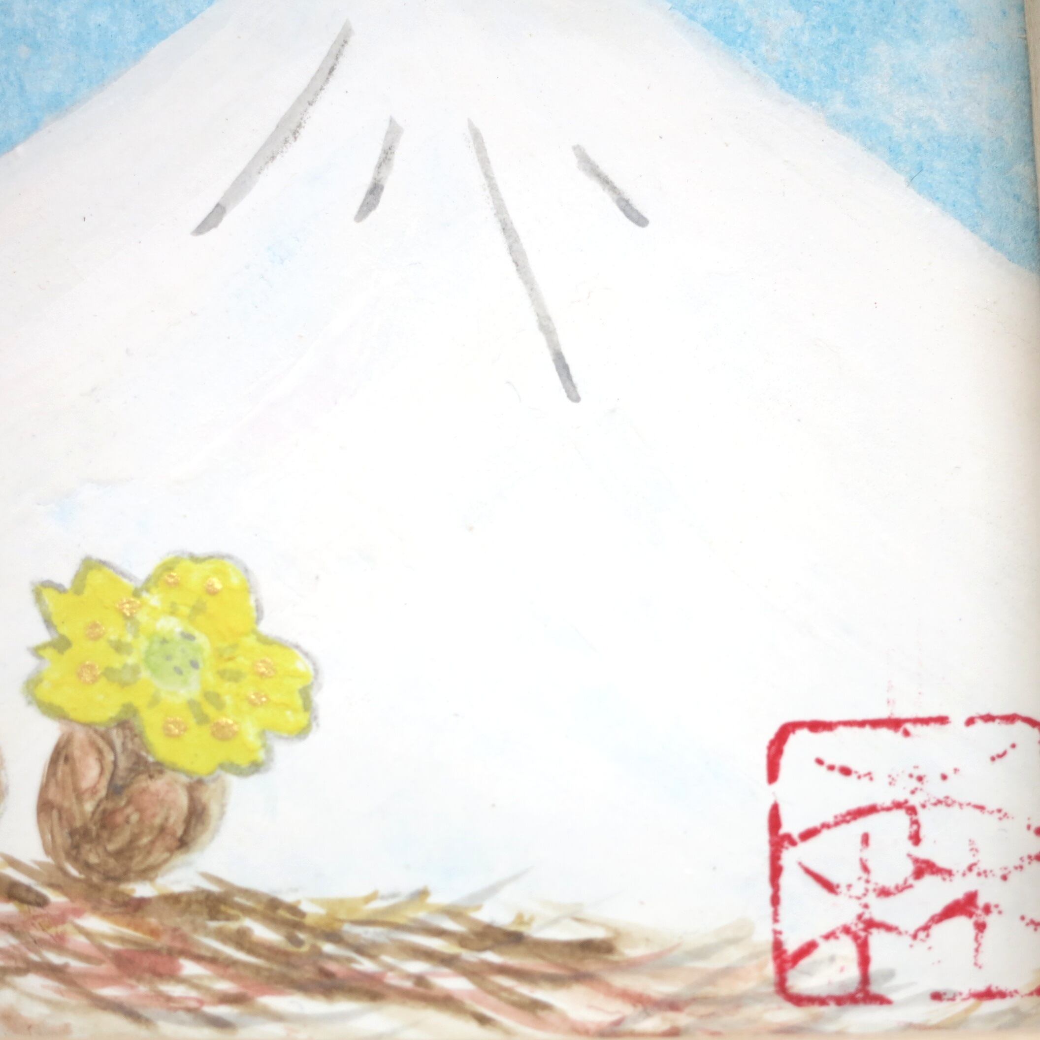 白富士とフクジュソウを描いた