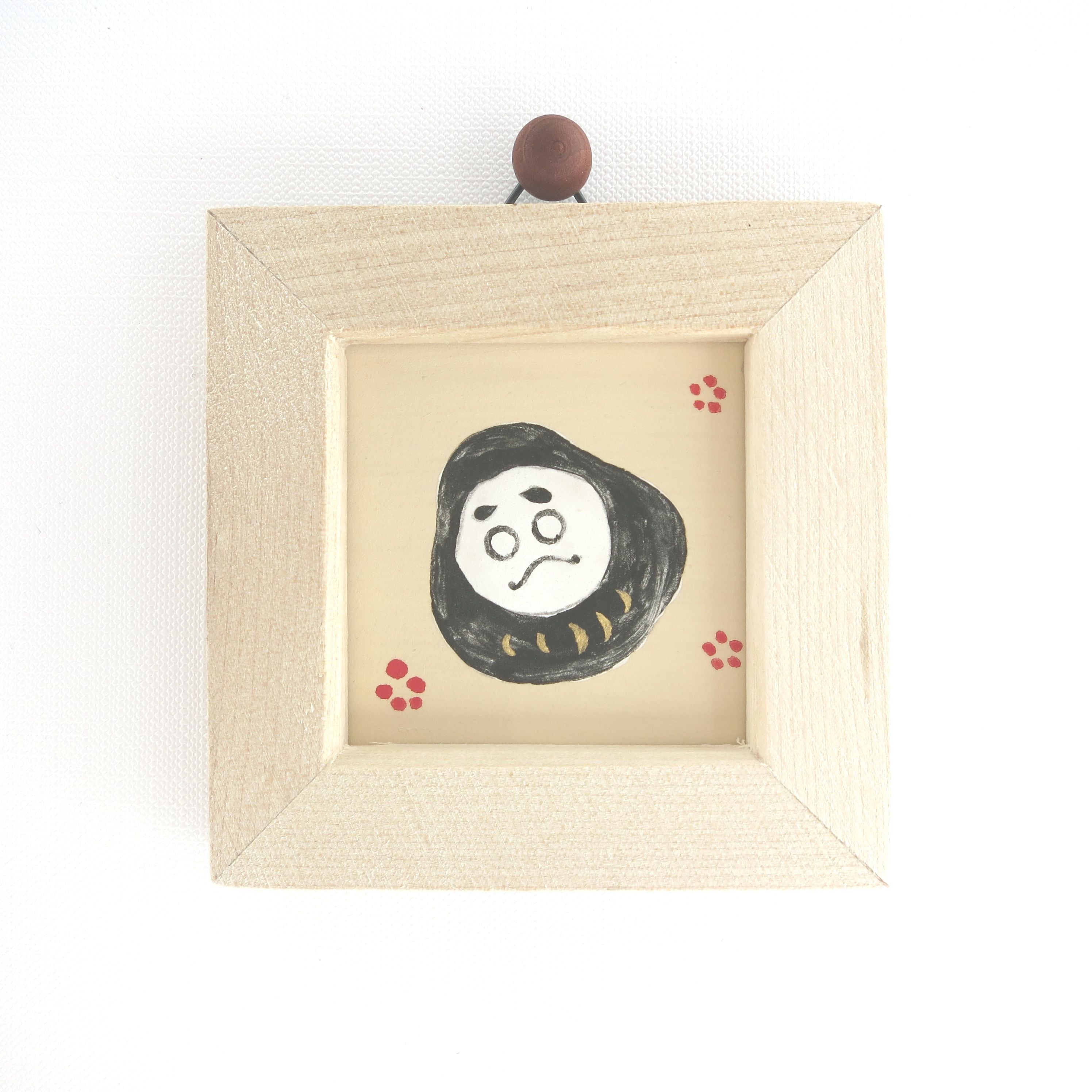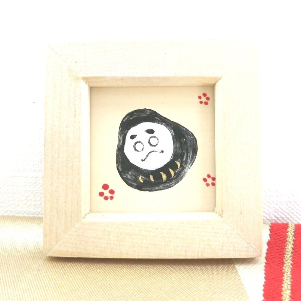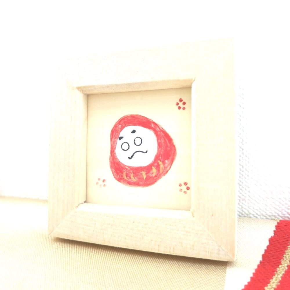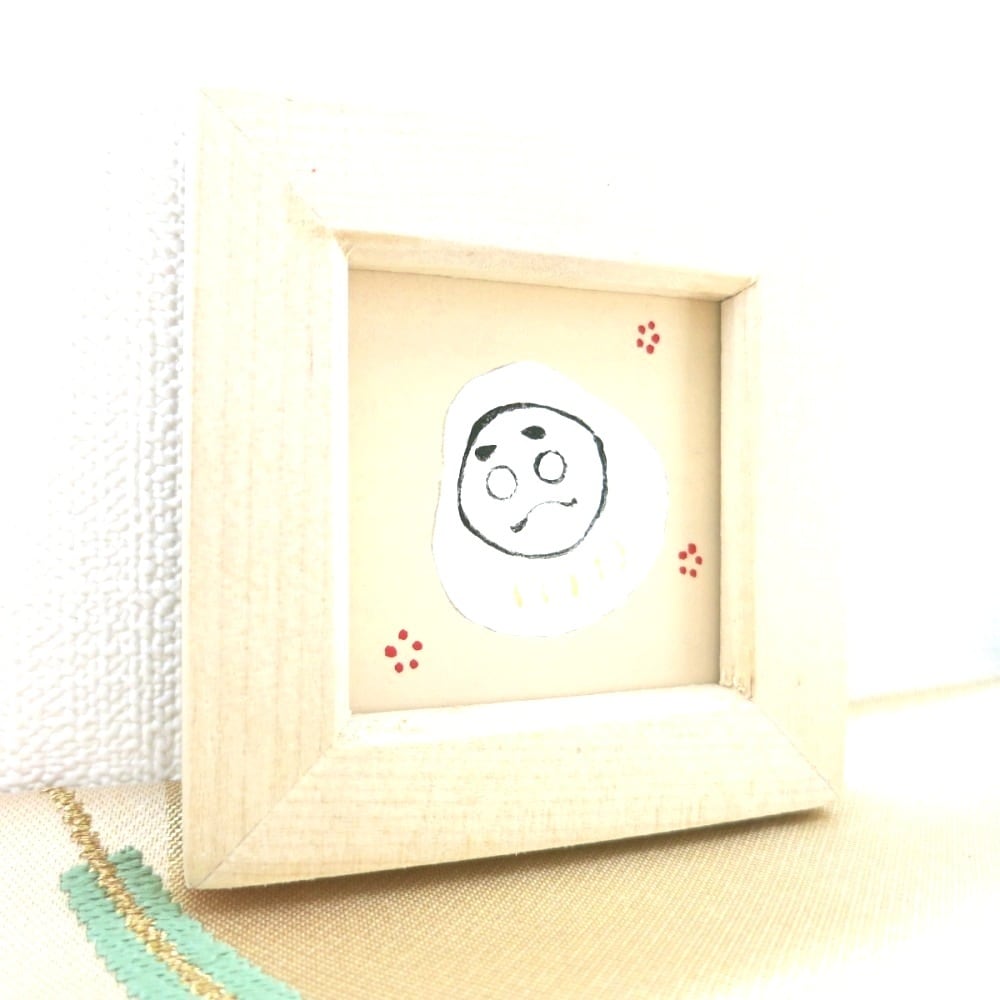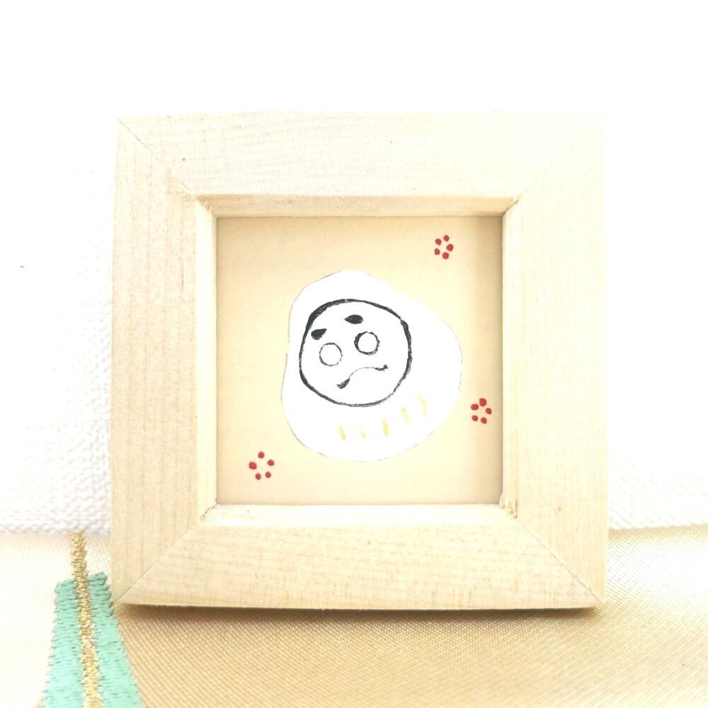 【日本画ポスター】縁起達磨ポスター 絵画 白・赤・黒 ミニ額付き 額7.7㎝×7.7㎝ 窓枠 縦4.5㎝×4.5㎝
