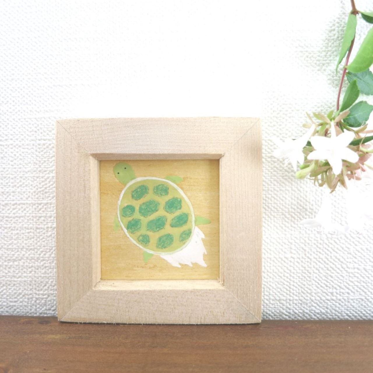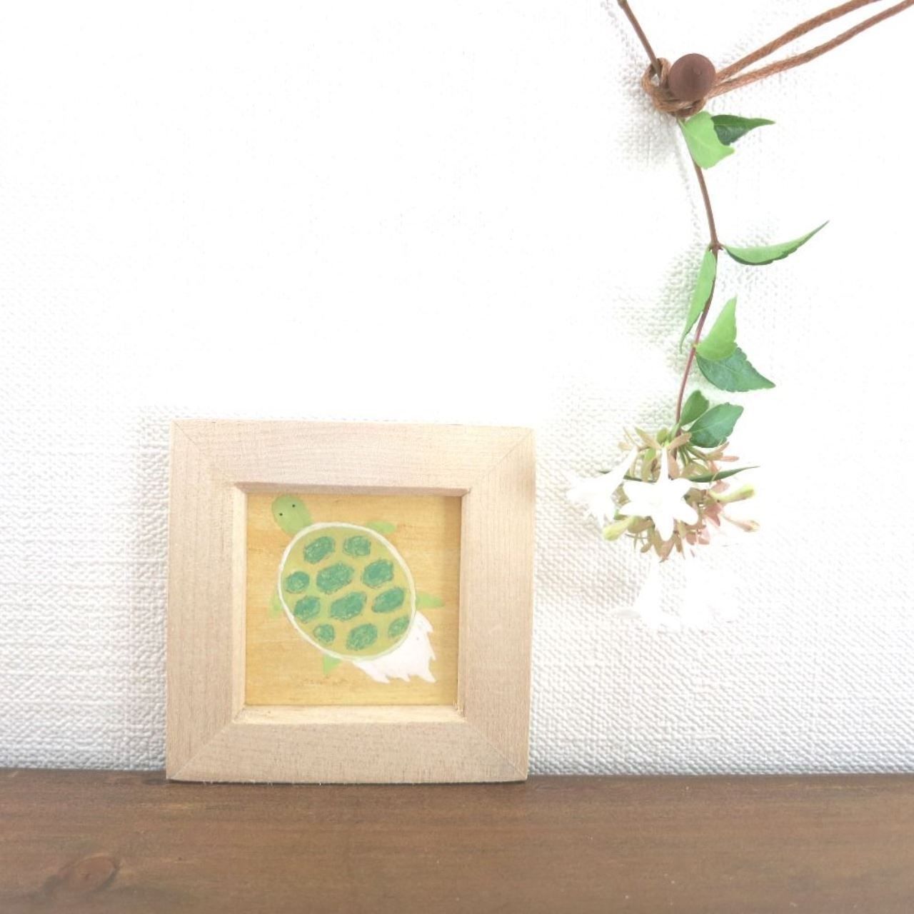 【日本画ポスター】絵画 亀の絵 ミニ額縁付き ミニアートパネル インテリアアート