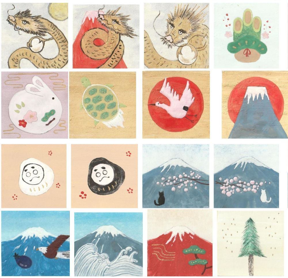 日本画で縁起の良い龍神様と富士山を描いたポスターです。