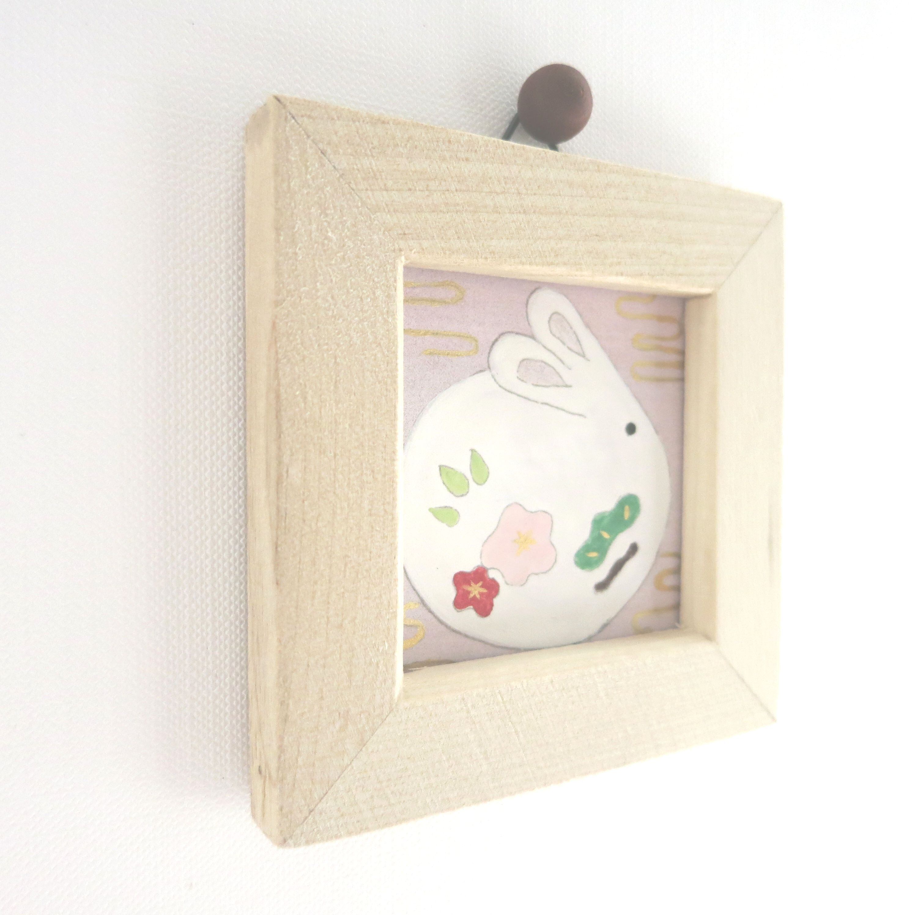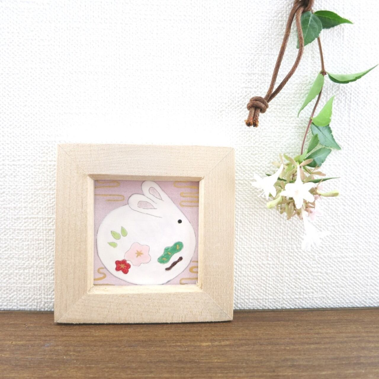 【日本画ポスター】干支の兎と松竹梅 花二つ ミニアートパネル ミニ額付き