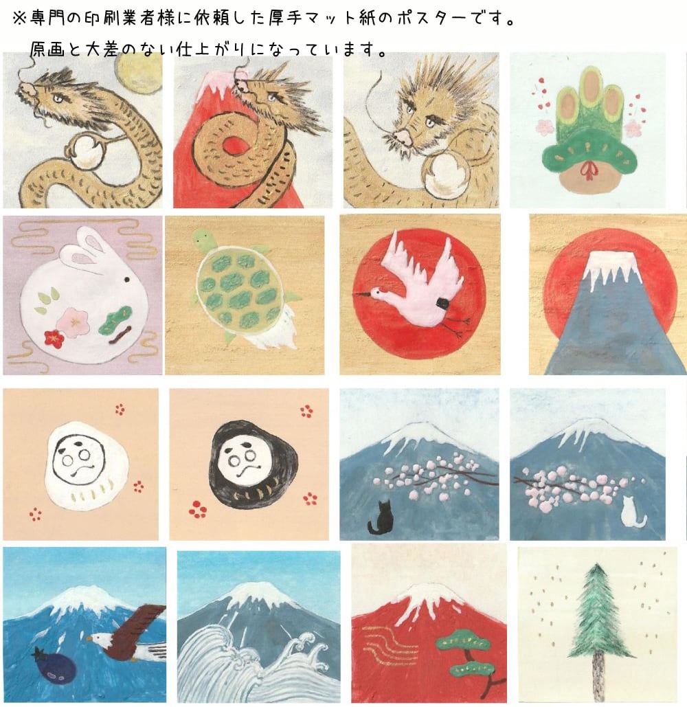 本画の顔料を使って描いた富士山と波をポスターにしました。