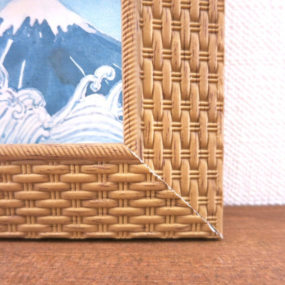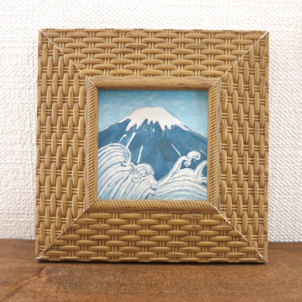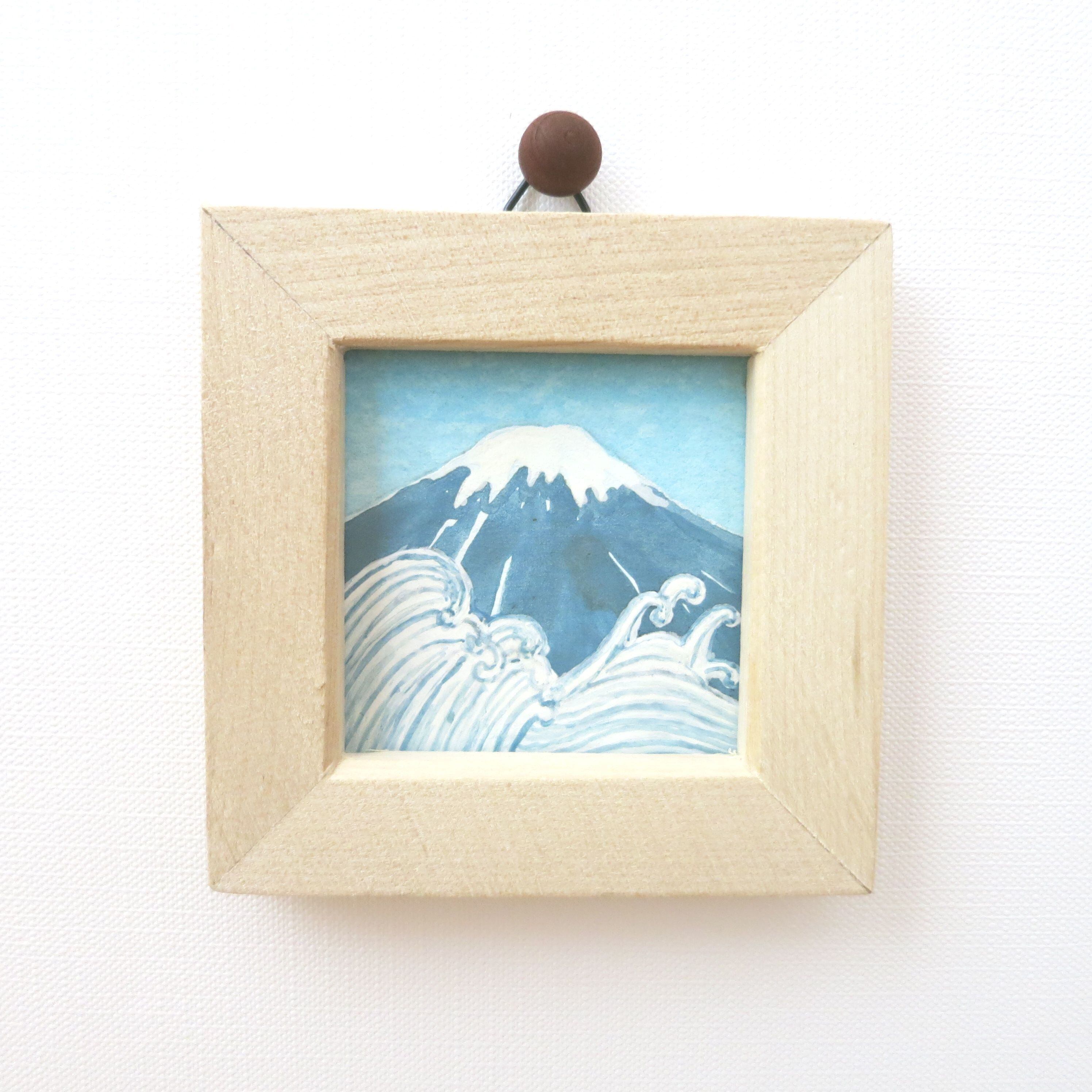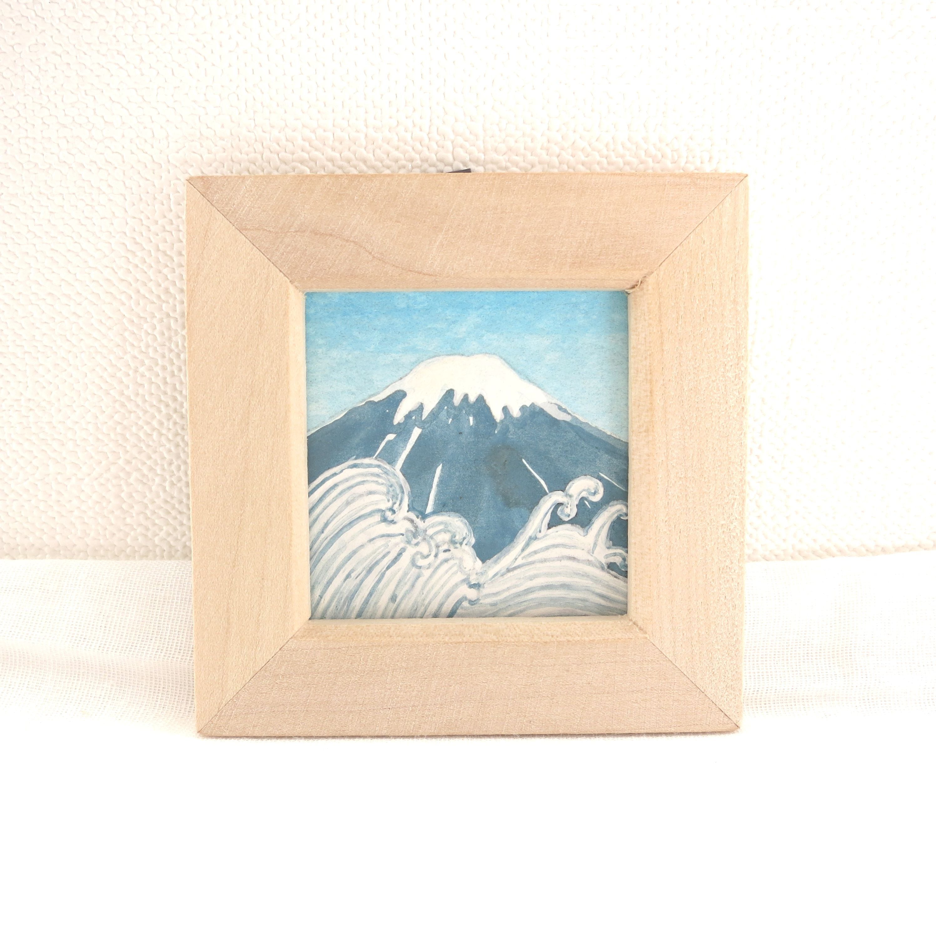 【日本画ポスター】富士山と波 絵画 ミニ額付き ミニアートパネル インテリアアート