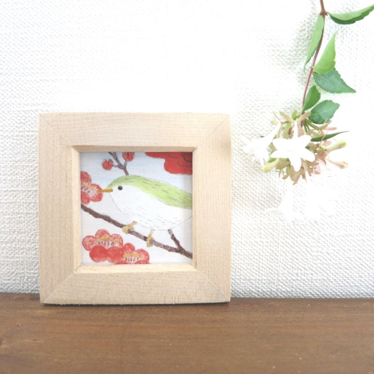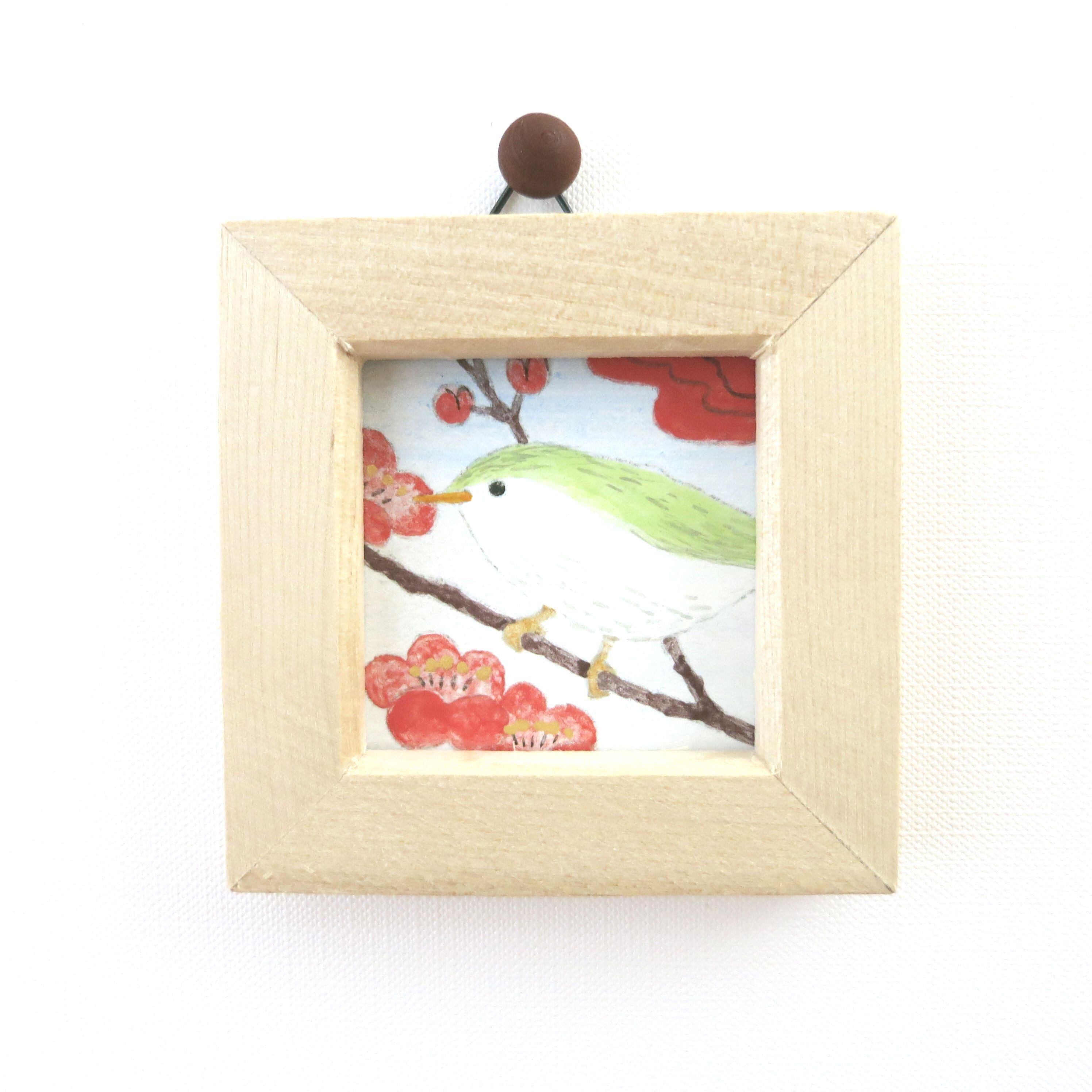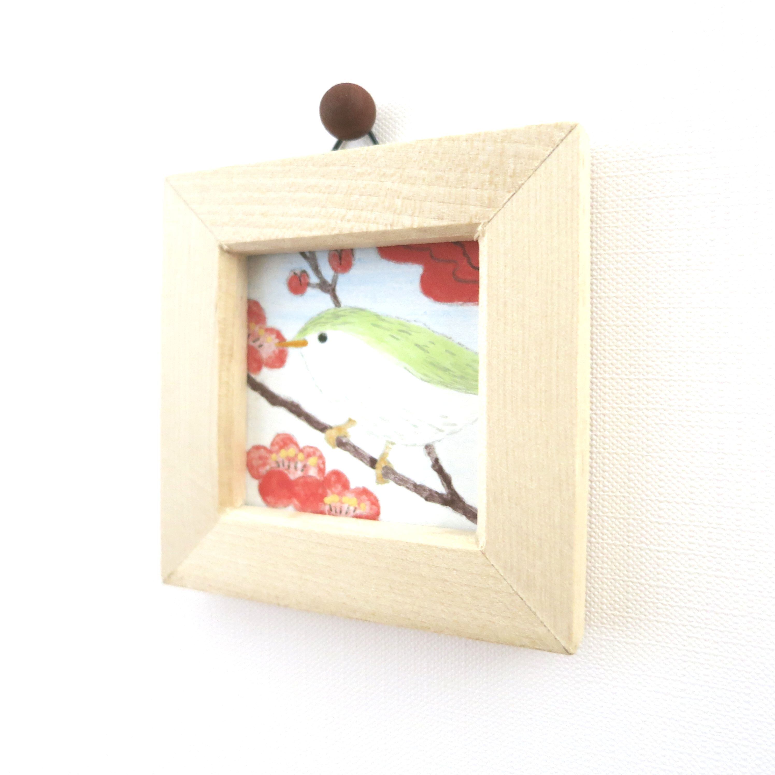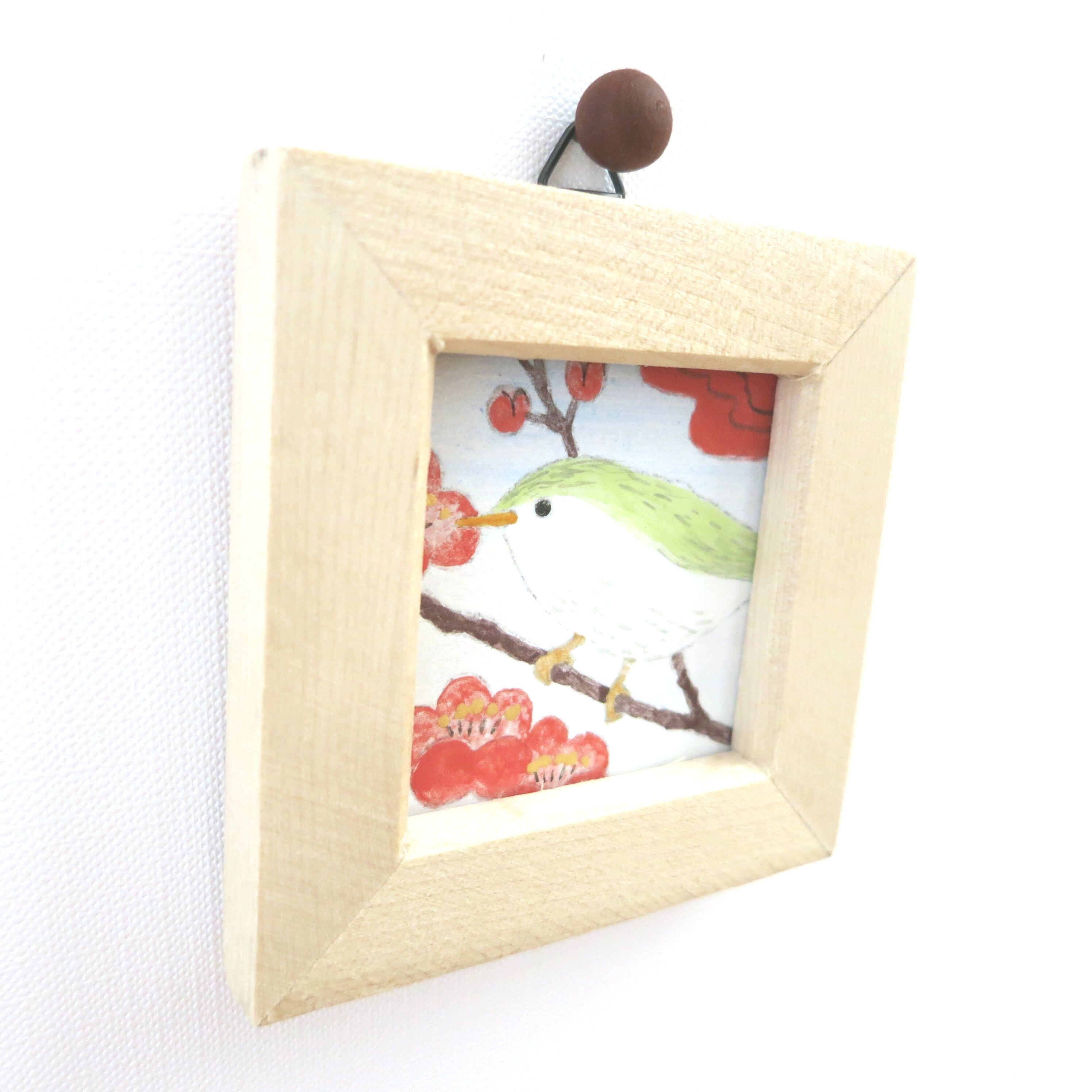 【日本画ポスター】紅梅と鶯 ウグイス 絵画 ミニ額付き ミニアートパネル インテリアアート