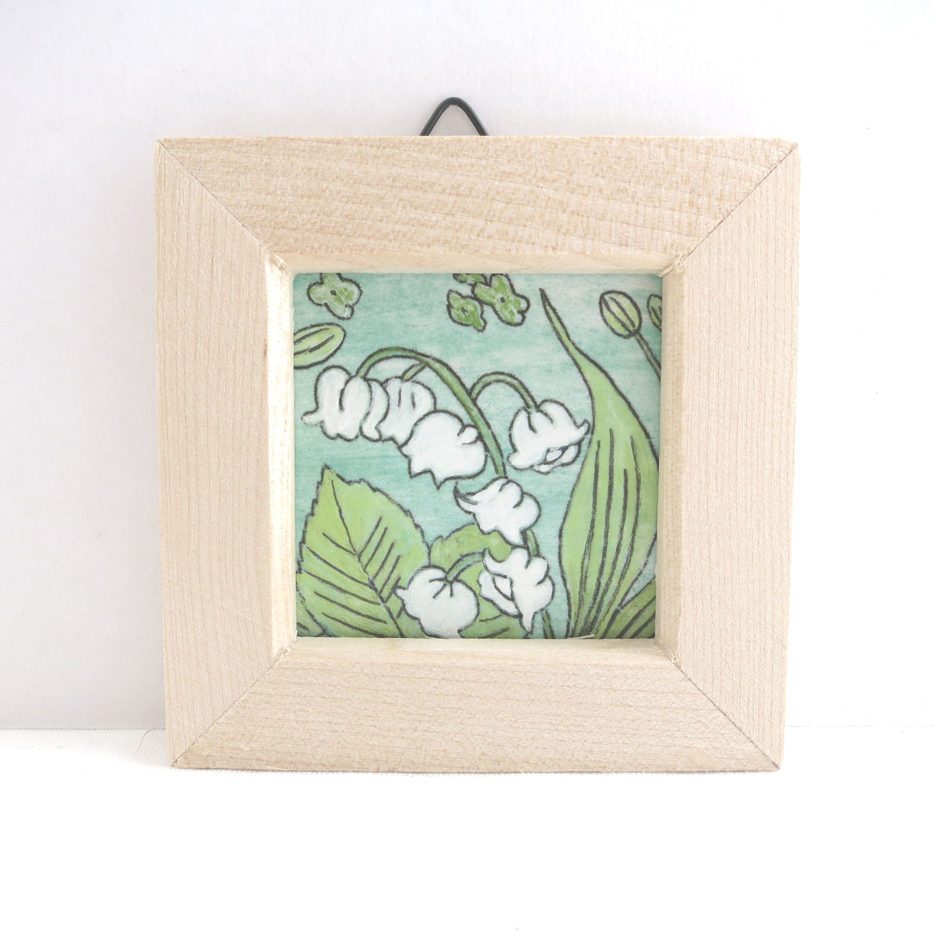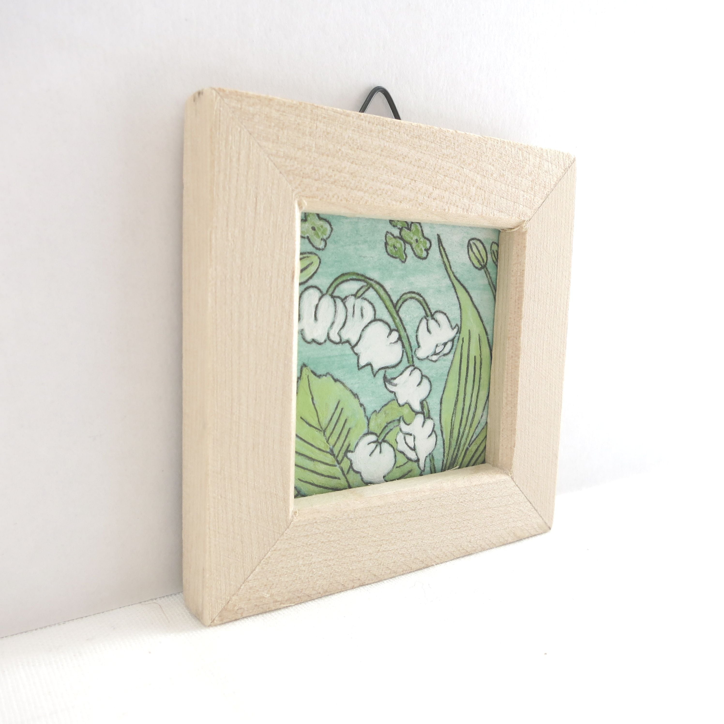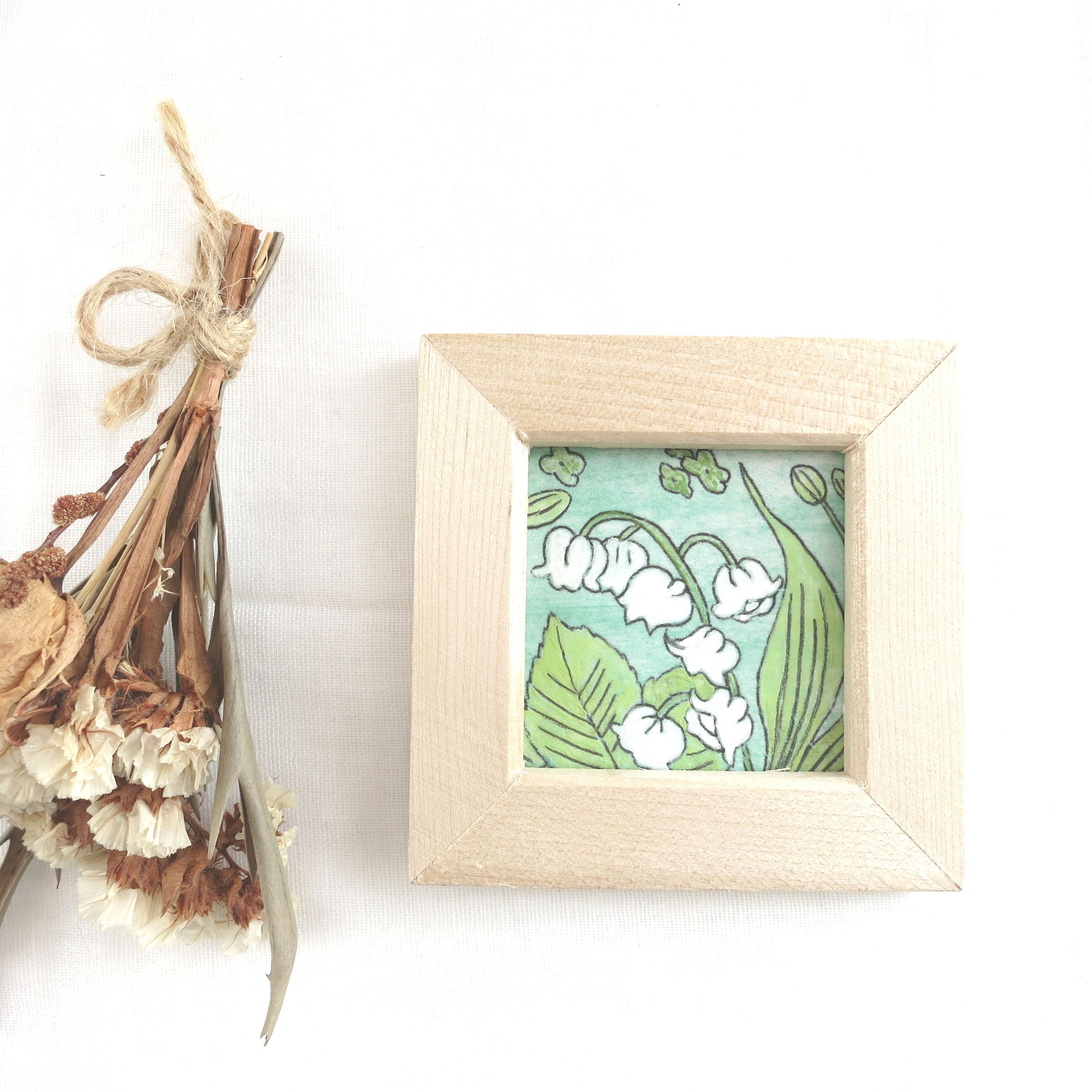 【日本画原画】コロコロ スズラン 絵画 ミニ額付き ミニアートパネル インテリアアート