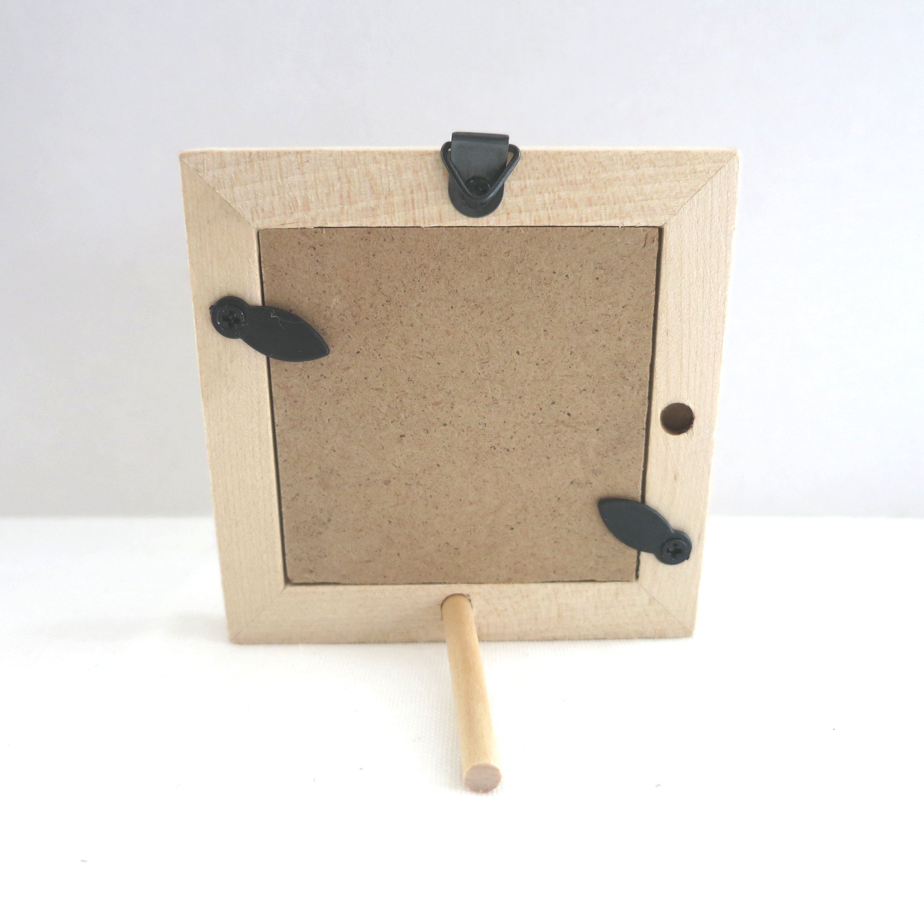 大きさは額7.7㎝×7.7㎝ 絵5.5㎝×5.5㎝ 窓枠 縦4.5㎝×4.5㎝ 厚み1㎝×1㎝になっています。
