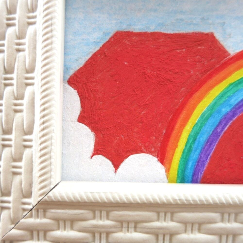【日本画原画】赤富士と虹と雲 絵画 ミニ額付き ミニアートパネル インテリアアート