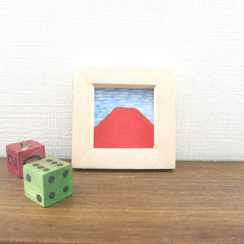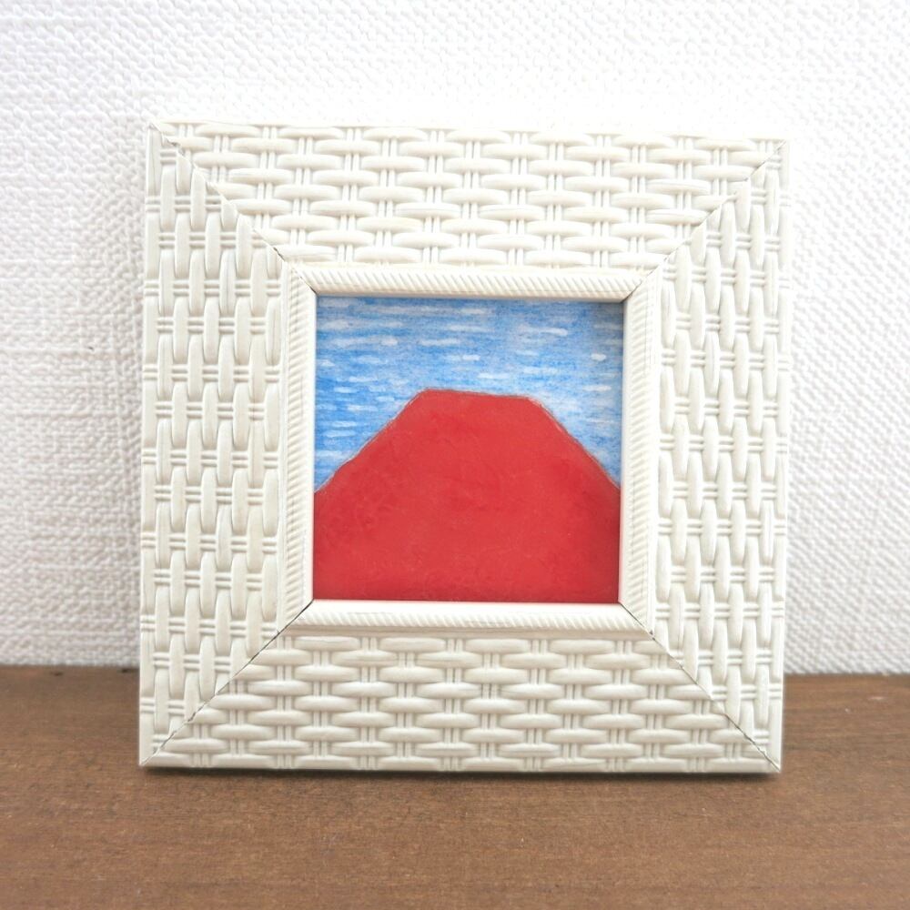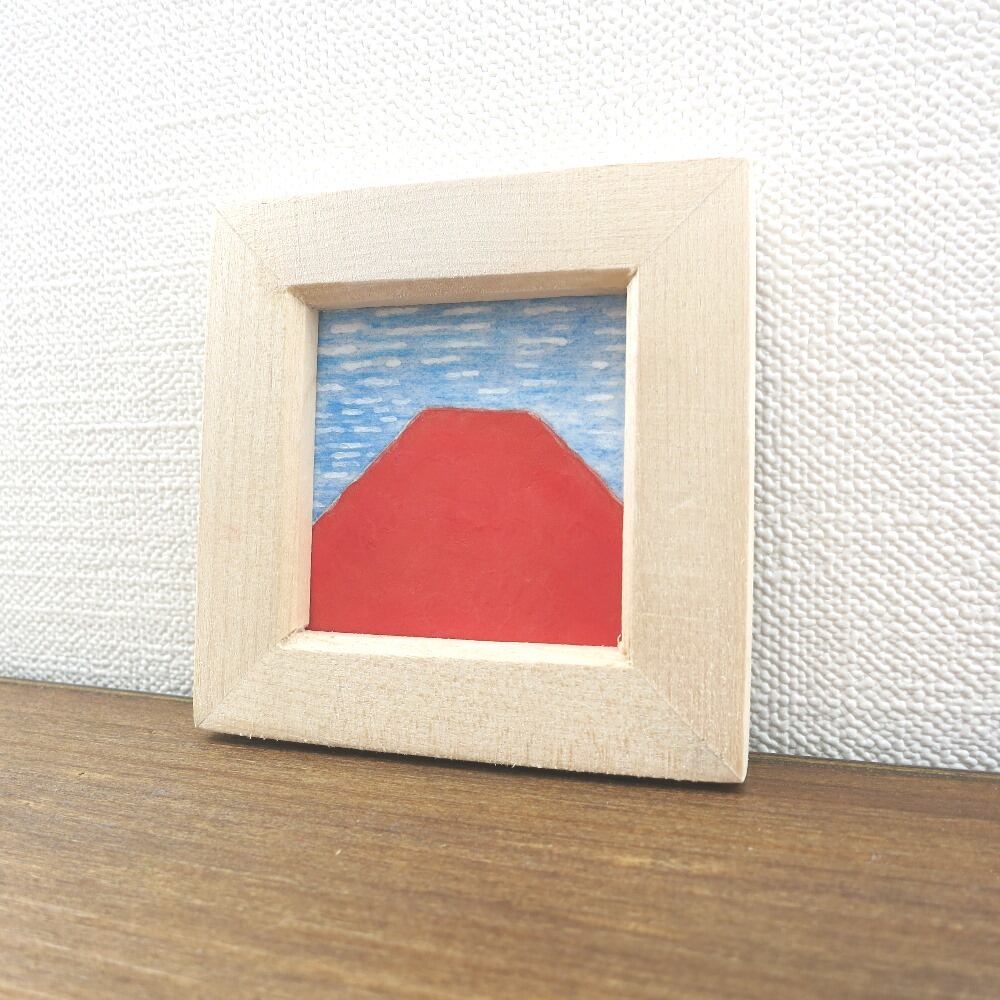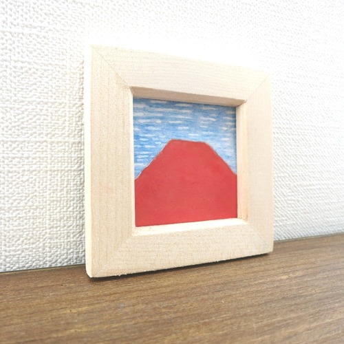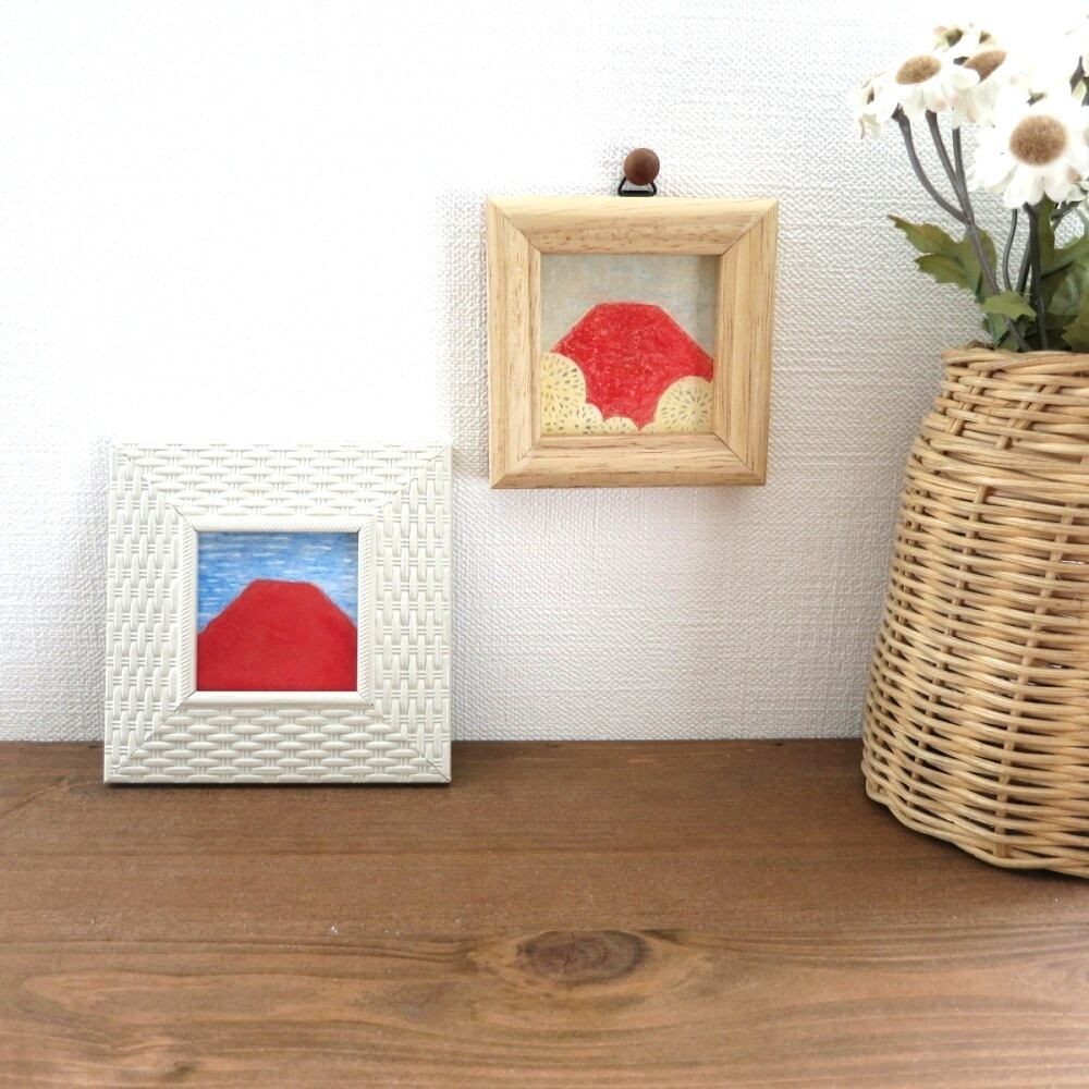 【日本画原画】赤富士とうろこ雲 絵画 ミニ額付き ミニアートパネル インテリアアート