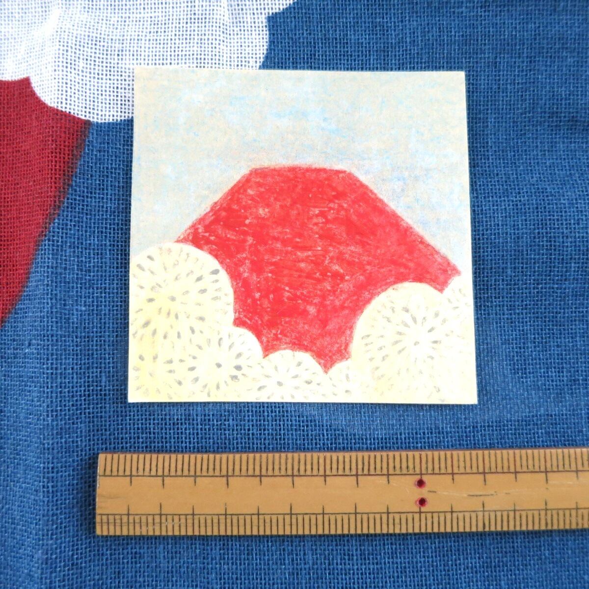 縁起の良い赤富士と満開の菊を描いた日本画原画です。