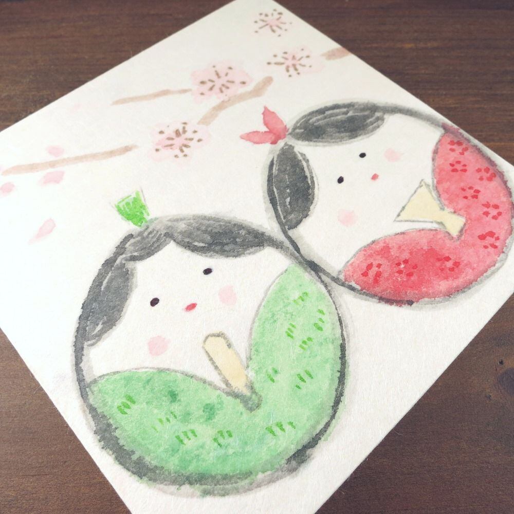 3月3日のひなまつりにちなんでおひな様を顔彩を使って描きました。