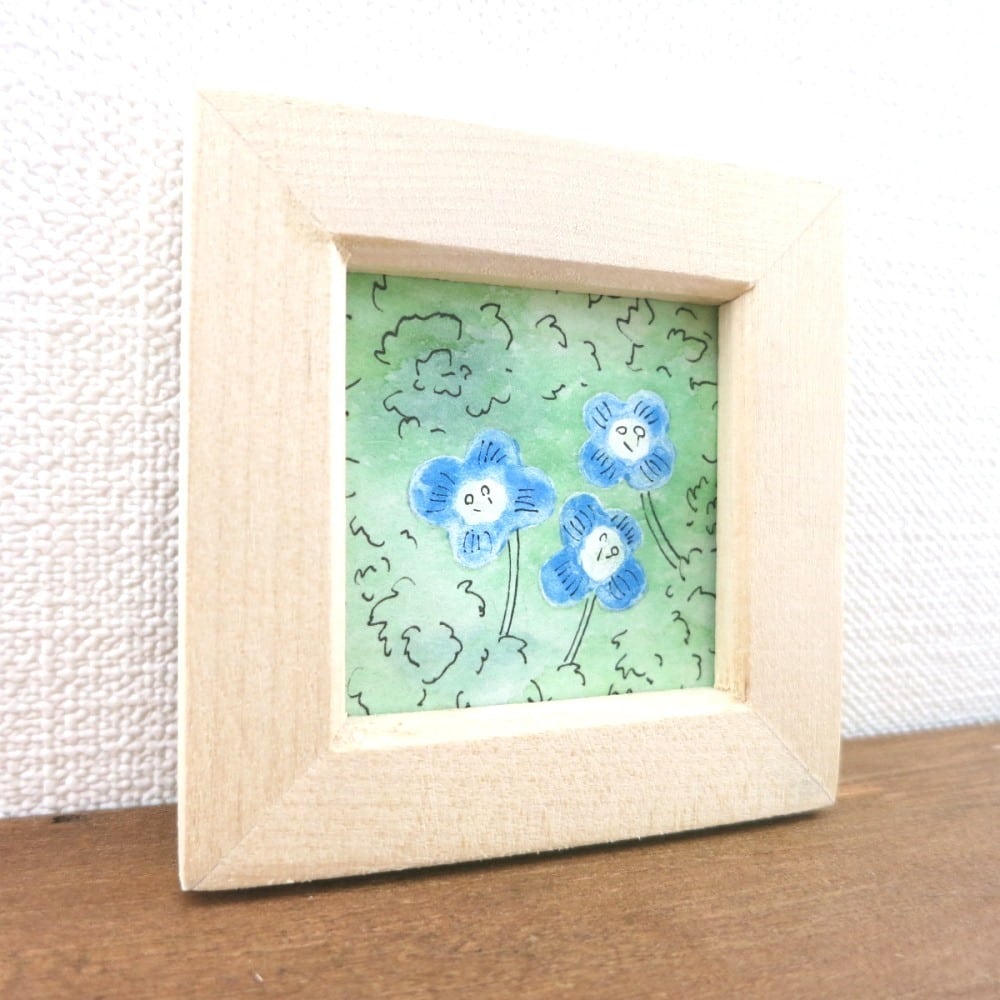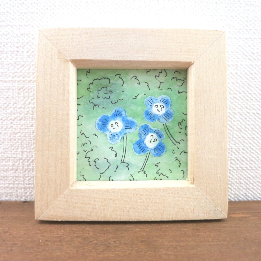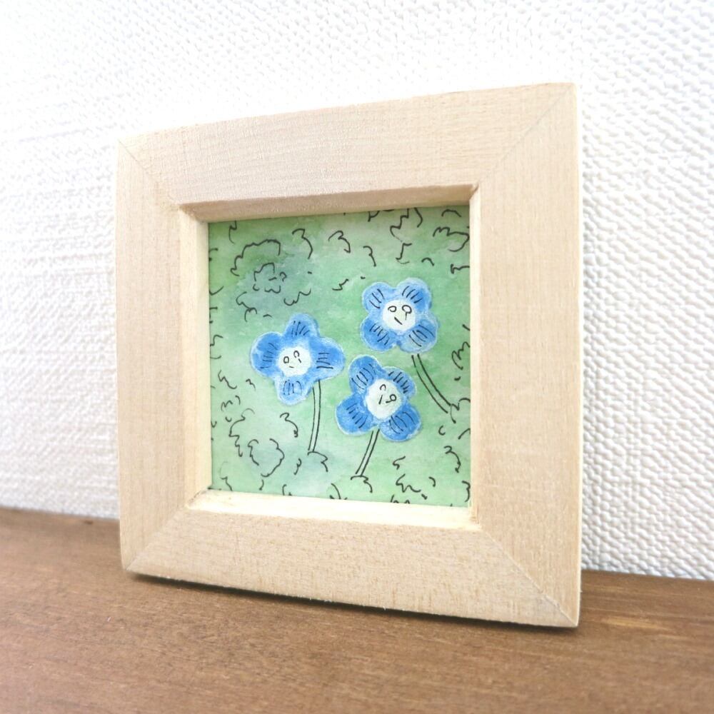 【日本画原画】オオイヌフグリ① 絵画 ミニ額付き ミニアートパネル インテリアアート