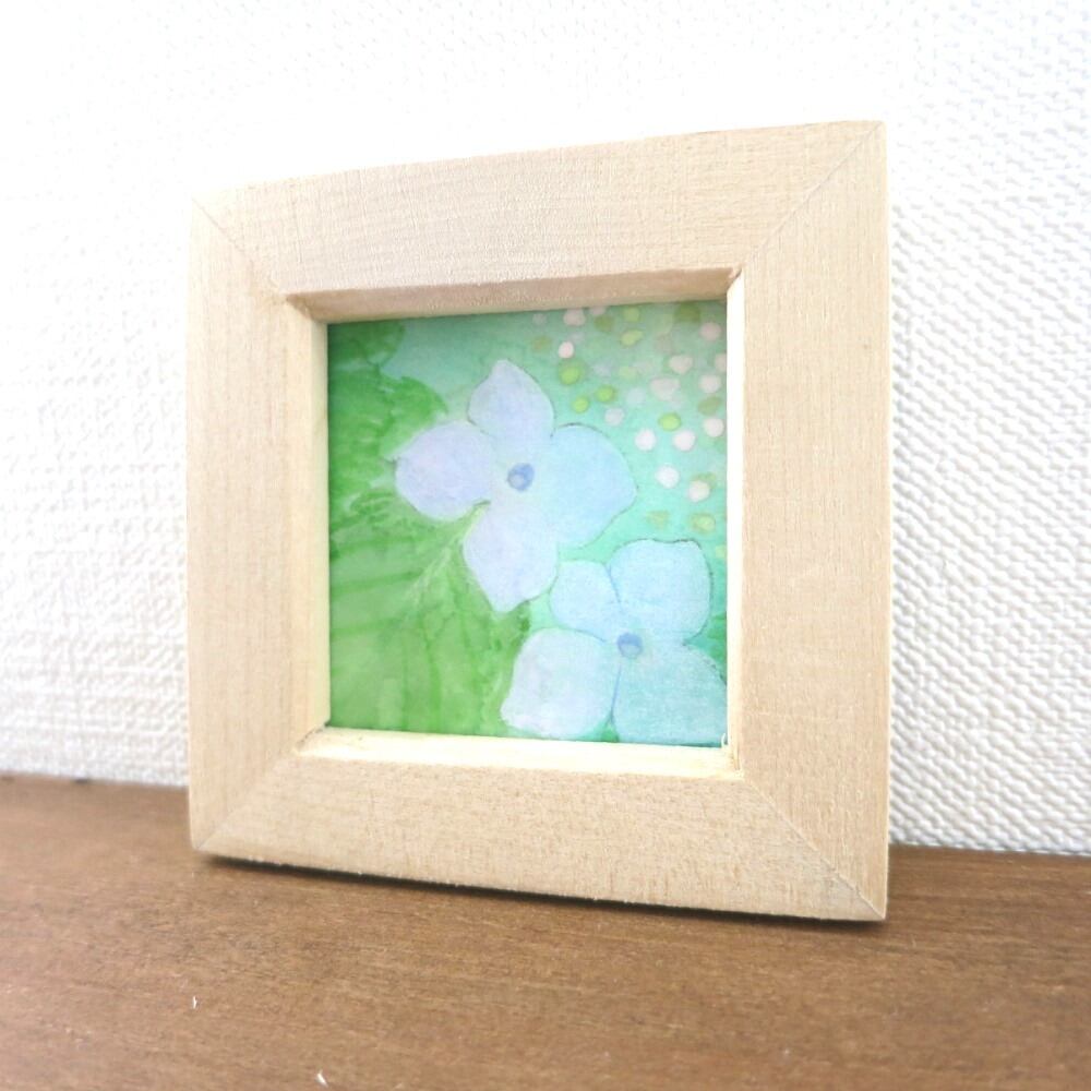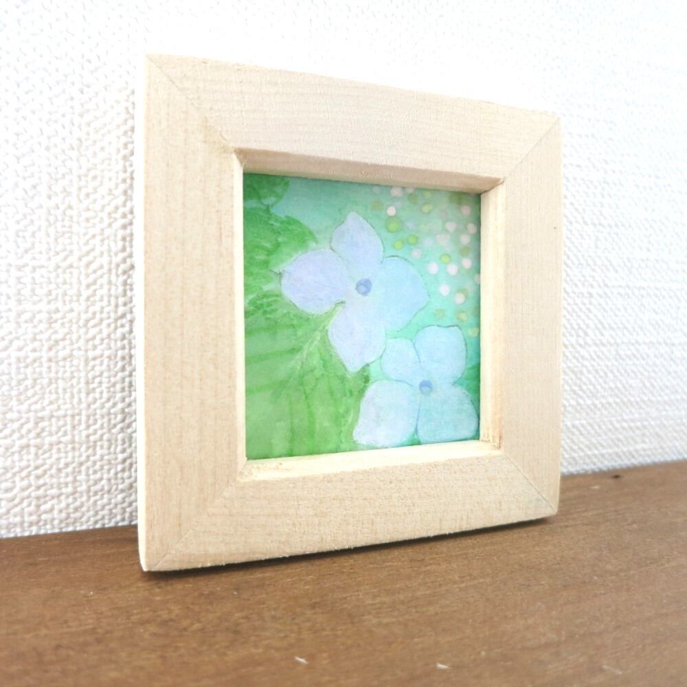 【日本画原画】紫陽花いろいろ③ 絵画 ミニ額付き ミニアートパネル インテリアアート