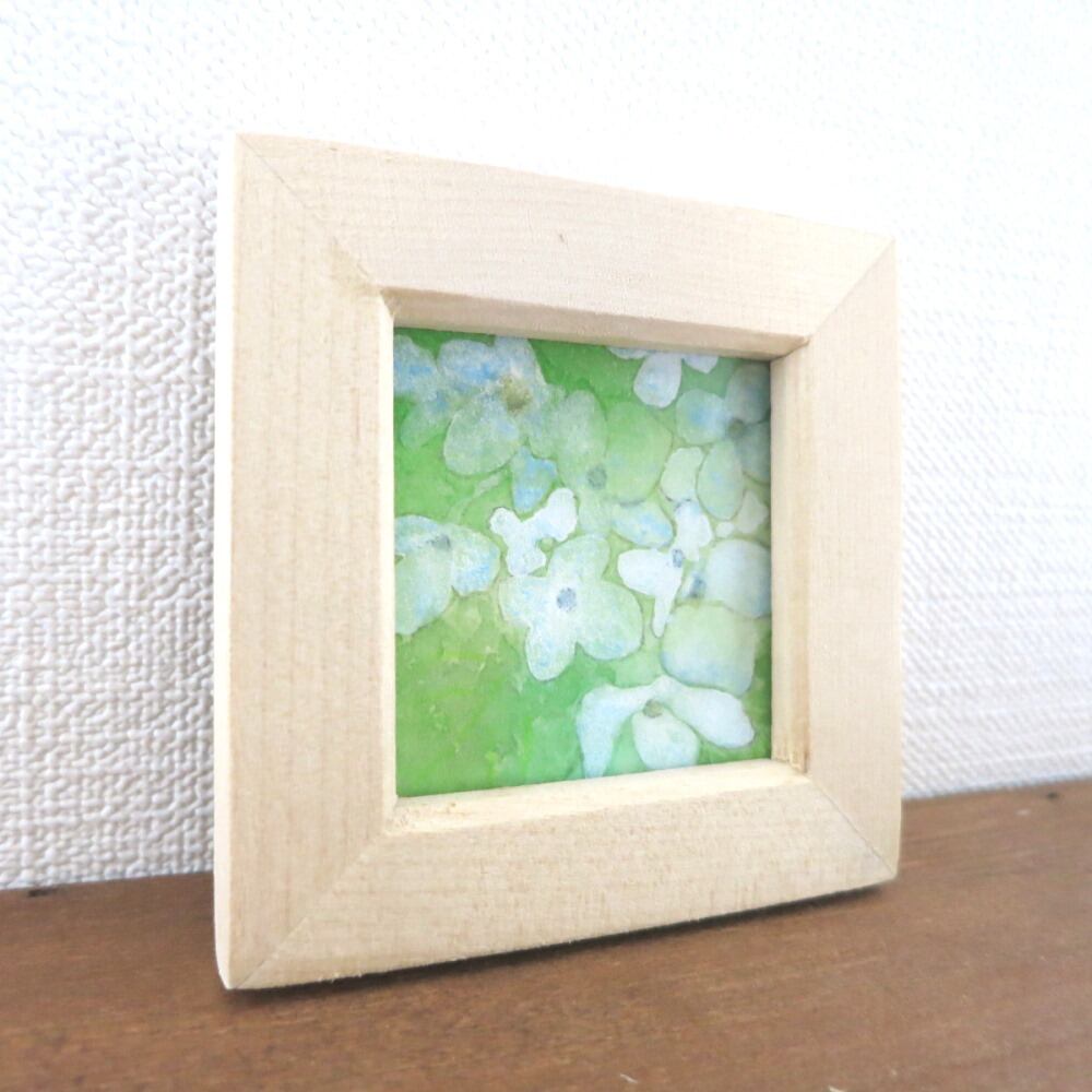 【日本画原画】紫陽花いろいろ⑤ 絵画 ミニ額付き ミニアートパネル インテリアアート
