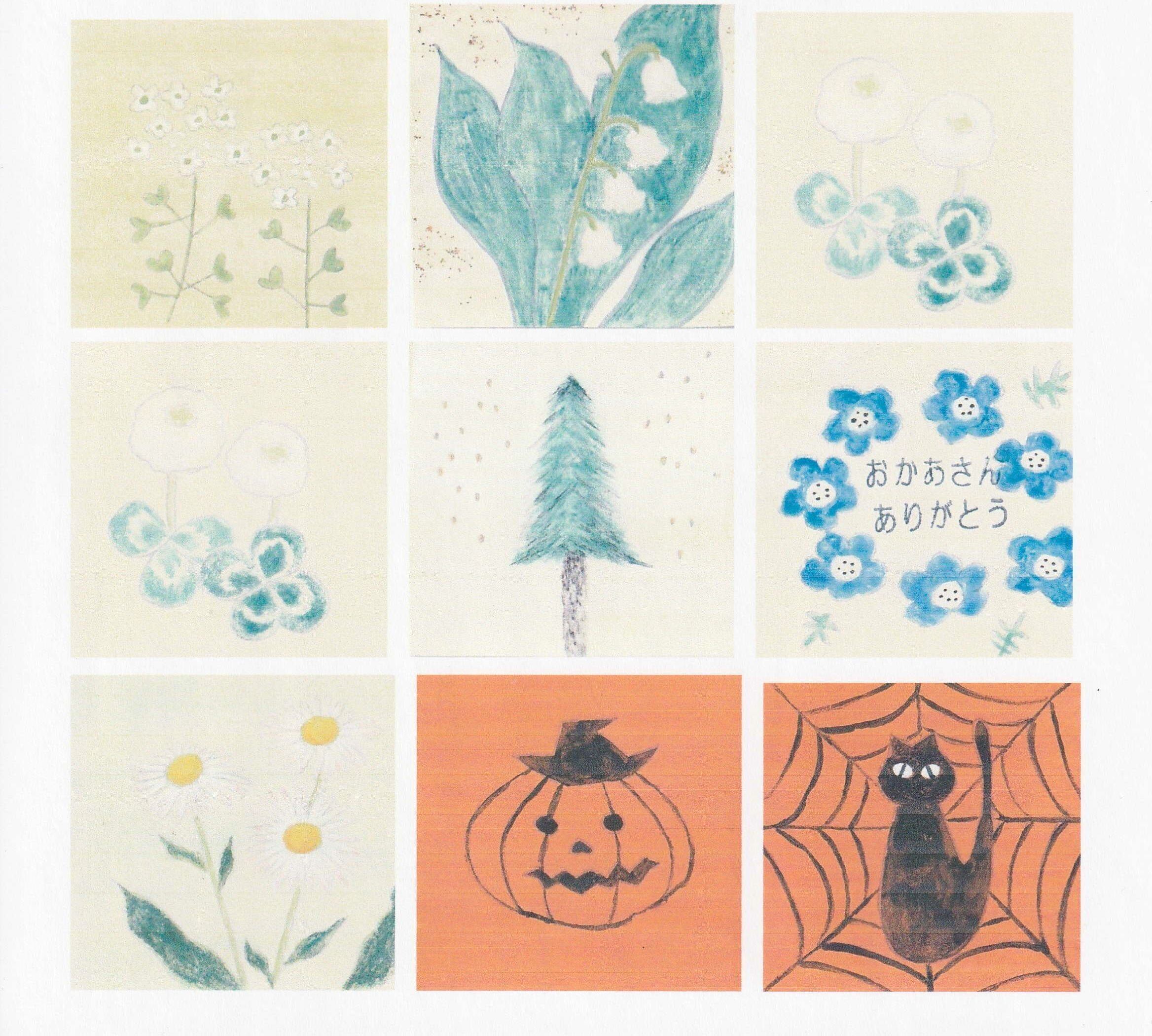 大きさは額7.7㎝×7.7㎝ 絵5.5㎝×5.5㎝ 窓枠 縦4.5㎝×4.5㎝ 厚み1㎝×1㎝になっています。