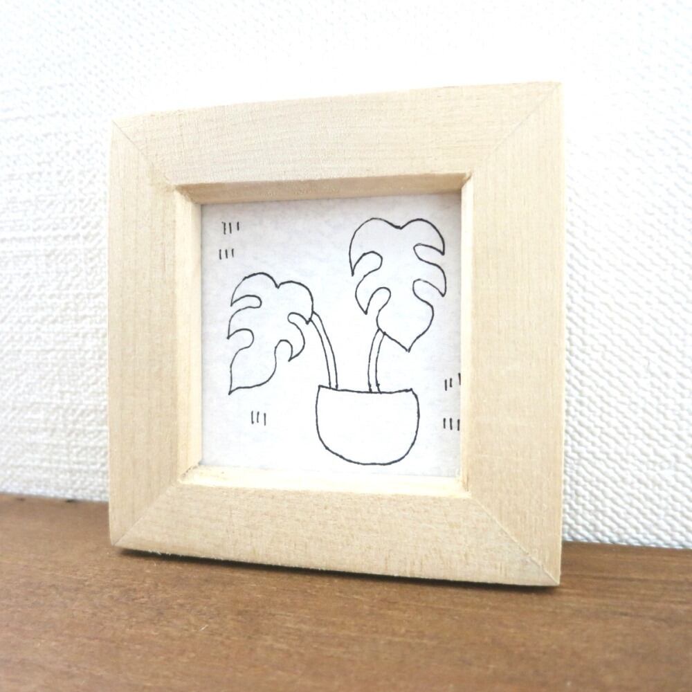 受注制作 モンステラの原画① 絵画 ミニ額付き ミニアートパネル インテリアアート