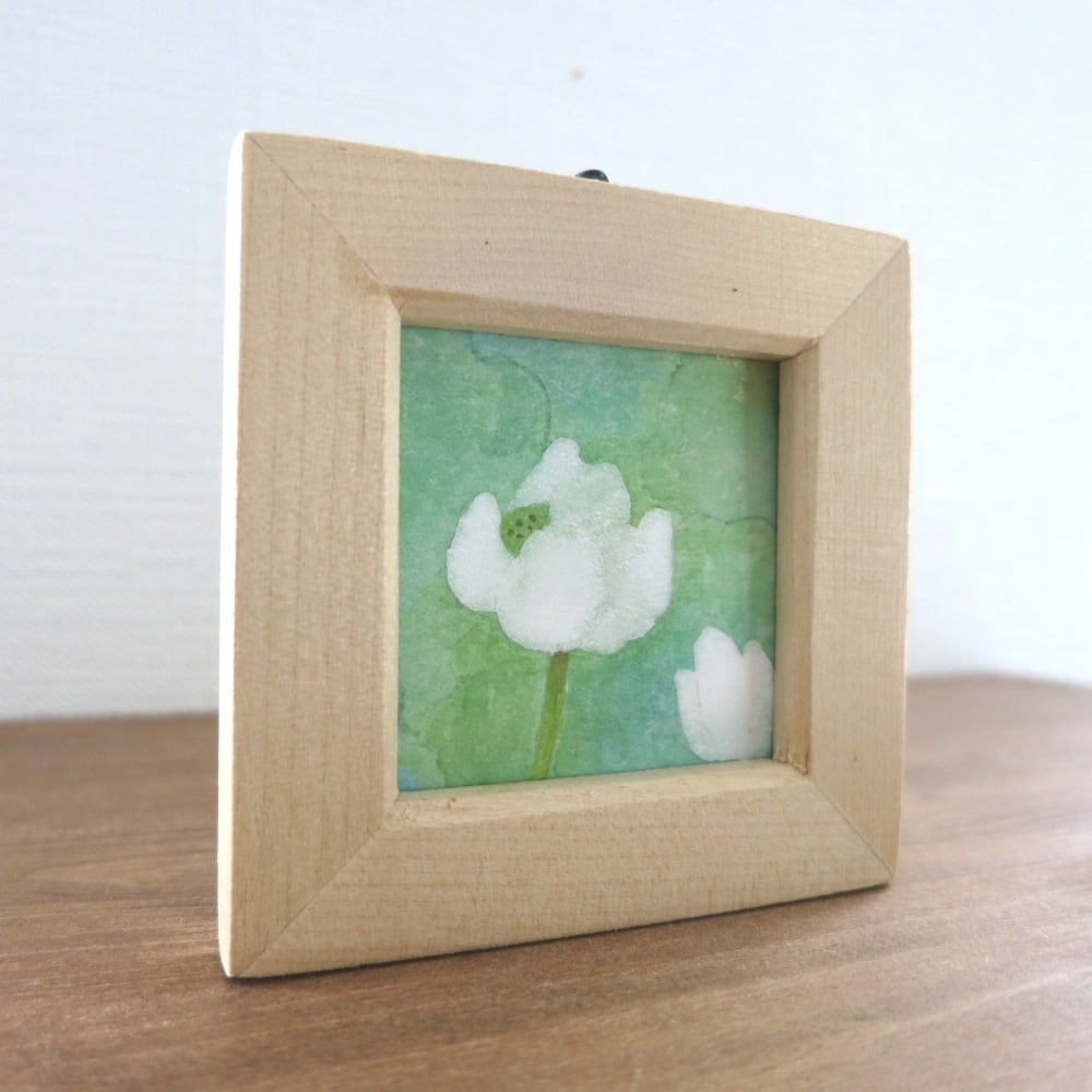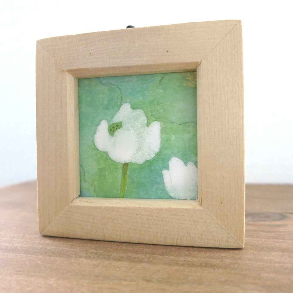 【日本画原画】蓮の花① インテリアアート ミニアート パネル ミニ額付き
