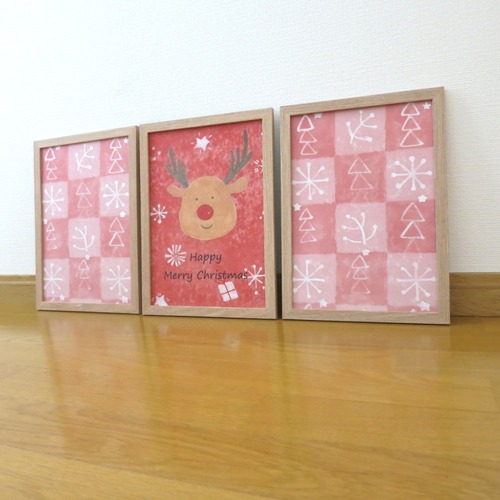 得々3枚セット クリスマス トナカイのポスター3点 happy merry christmas red