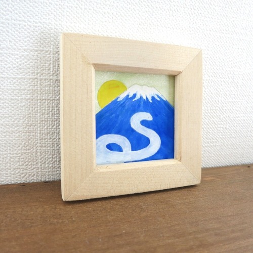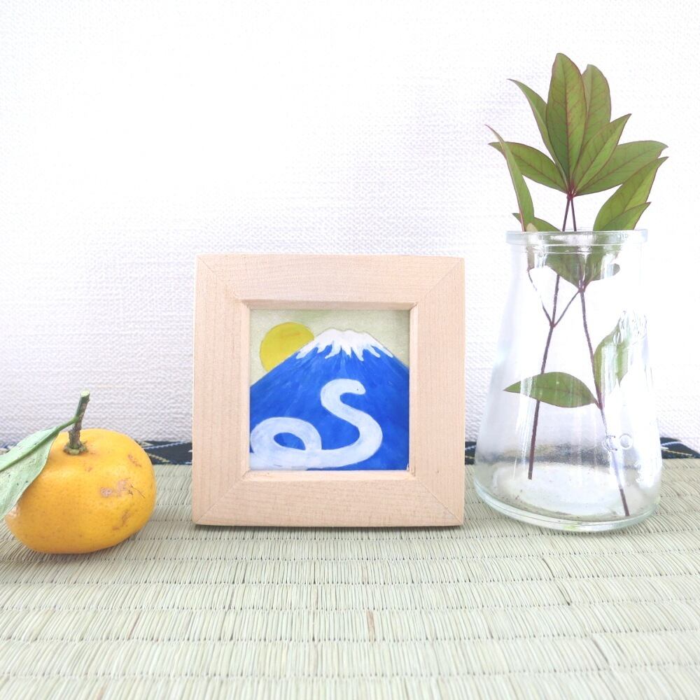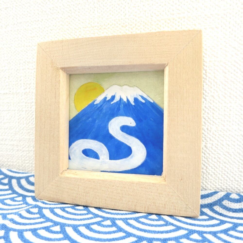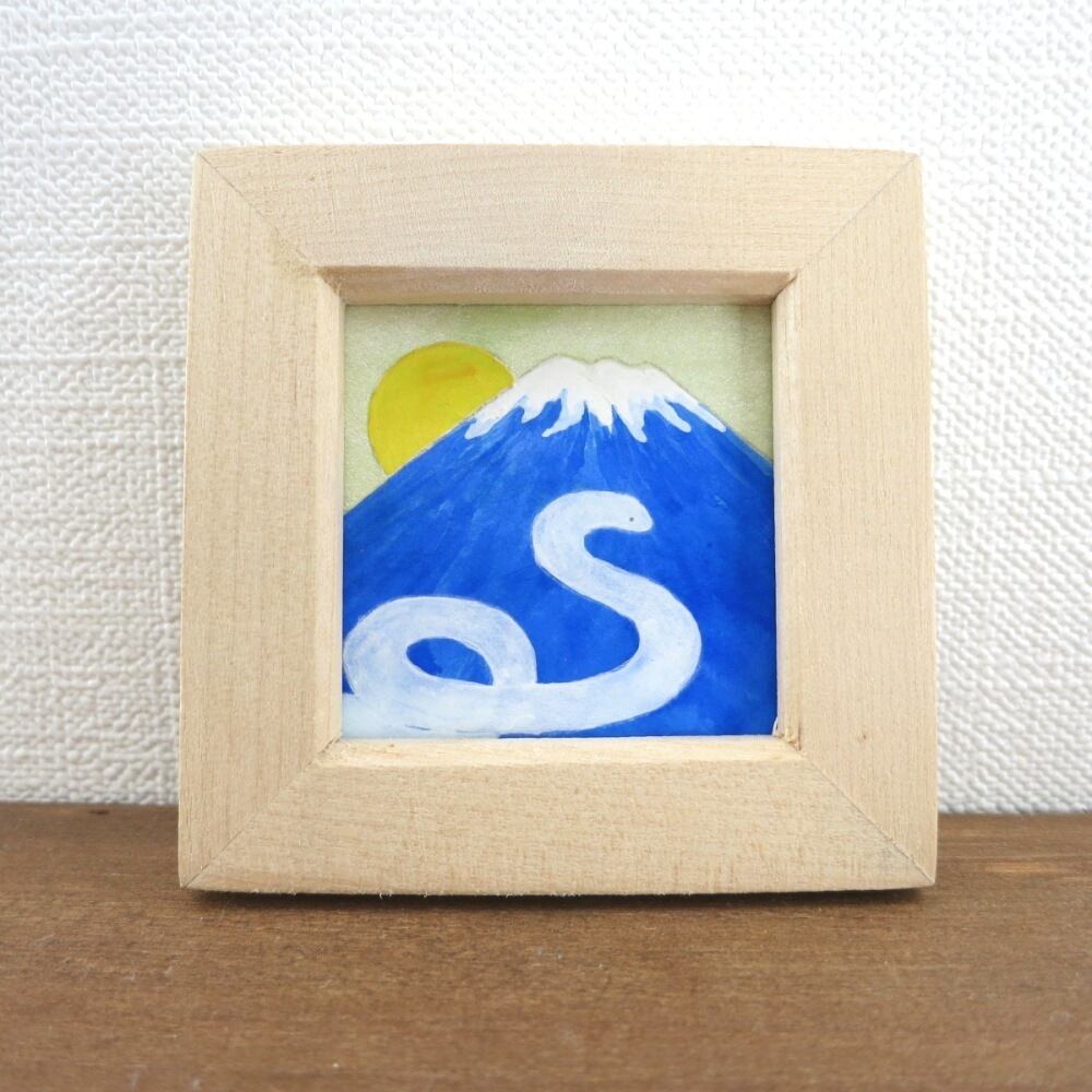 【日本画原画】初日の出と白蛇と積雪の青富士③カレンダーのおまけ付き ミニ額縁付き ミニアートパネル インテリアアート