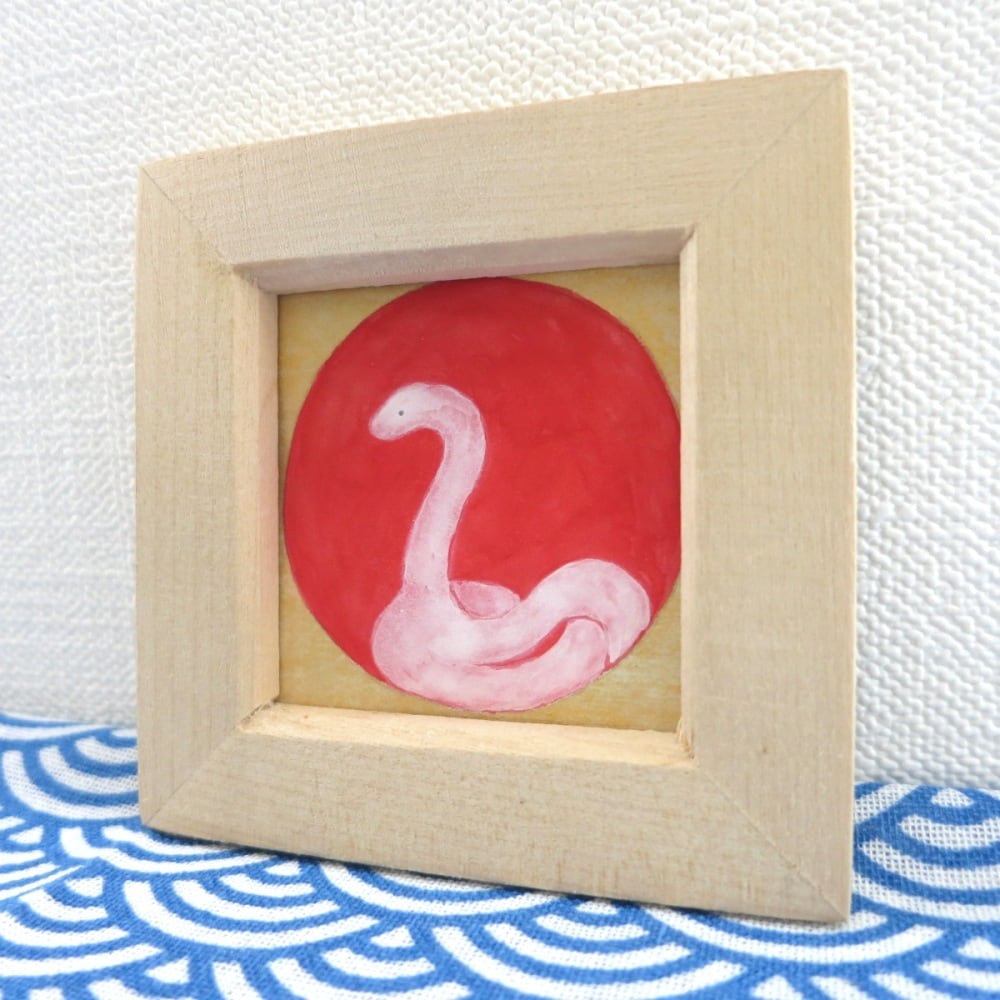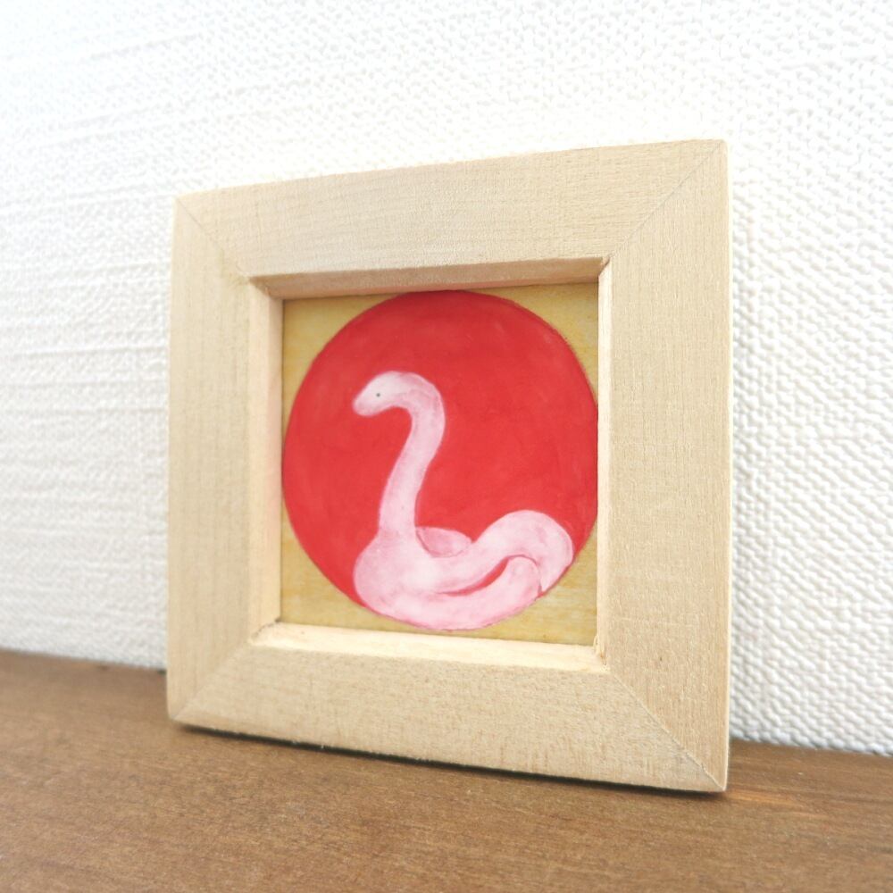 【日本画原画】黄金と太陽と白蛇⑥カレンダーのおまけ付き ミニ額縁付き ミニアートパネル インテリアアート