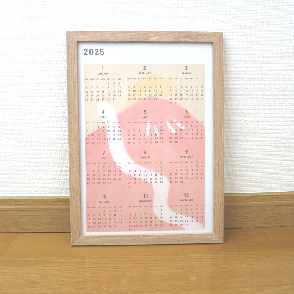縁起の良い富士山と初日の出・干支の蛇を背景にした2025年の年間カレンダーを作りました。